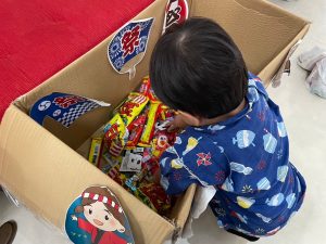次はみんなが一番楽しみにしていたお菓子のつかみ取り😆