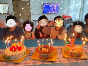 さっそく、ケーキに蝋燭に火をつけたらみんなでお誕生日の歌を歌います♪