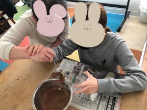 手を綺麗に洗って消毒をし クッキング開始です♪