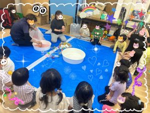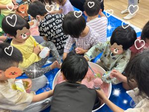 今日は子どもたちと一緒に、センサリープレイを楽しみました!