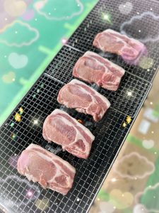 まずはじっくりとお肉を焼いて…香ばしい香りが辺り一面に広がります。