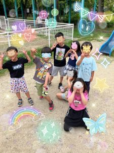 そうめんでお腹が満たされたあとは、近くの公園へ移動してけいどろ(警察と泥棒の鬼ごっこ)!