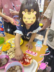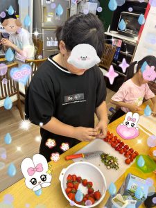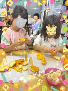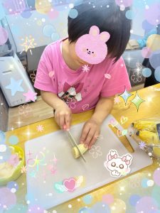 今回は、みんなで役割分担をしてフルーツのカットに挑戦しました。