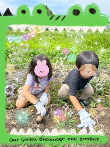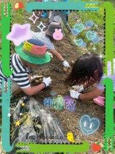「ここにいっぱいある!」「大きいのとれた!」「もっと掘ってみよう!」と、声をかけ合いながらお友達と協力して取り組む姿がたくさん見られました。