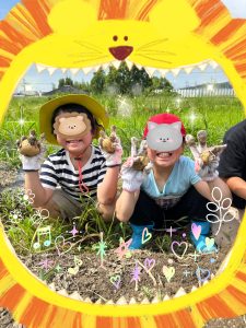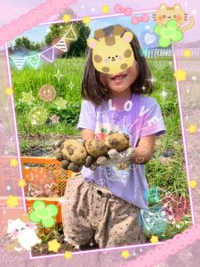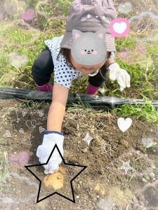 ここ最近は雨が続いていたこともあり、子どもたちは「やっと晴れた!」と、楽しみにしていたジャガイモ掘りに朝からワクワクしている様子でした♪