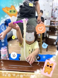 2回目の参加となる子どもたちは、そうめんを掴むのもとても上手になっていて、笑顔と歓声があふれるひとときとなりました😊