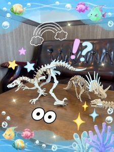 木のパーツを組み立てて、立体的な恐竜を完成させていきます!少し難しいところもありましたが、みんな集中して取り組んでくれました。
