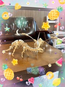 木のパーツを組み立てて、立体的な恐竜を完成させていきます!少し難しいところもありましたが、みんな集中して取り組んでくれました。