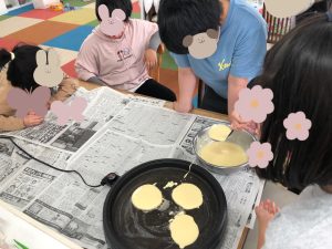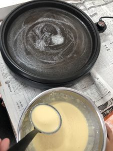 バターを広げたら生地を均等な大きさに生地を焼いていきます🎵