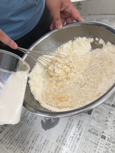 まず初めに卵と牛乳、ホットケーキミックスを混ぜます🥚