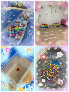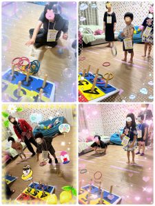 子どもたちはグループごとに各コーナーを回り、笑顔いっぱいで挑戦していました。