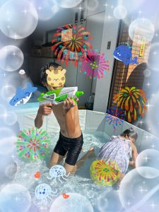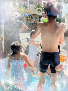 水鉄砲や水風船、プールボールなどを使って、思いきり体を動かしました。水しぶきと笑い声が絶えず、夏ならではの楽しい時間を過ごすことができました。