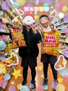 おやつの時間には、ポッキーとポテトチップスをみんなで囲んで「いただきます!」✨