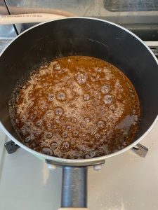 砂糖と水を熱して黄金色になるまで熱して飴を作ります✨