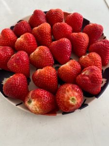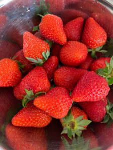 いちごのヘタをとってひとつひとつに串を刺して行こう💫