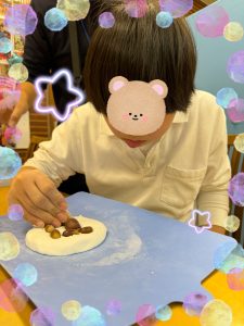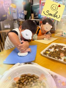 そのあと自分の名前の頭文字をどんぐりに書き、丁寧に配置していきます✍️
