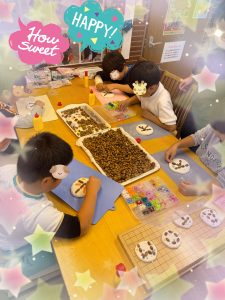 「ここにもつけたい!」「キラキラにしたい!」と、子供達のこだわりがあふれます。