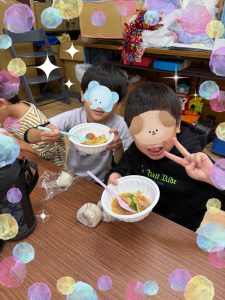 朝から「鍋パ!鍋ぱ!」と楽しみにしてくれている子どもたちの声が聞こえ、私たちスタッフもとても嬉しい気持ちでスタートしました。