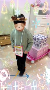 まずは、トナカイのカチューシャを付けてトナカイに変身♪